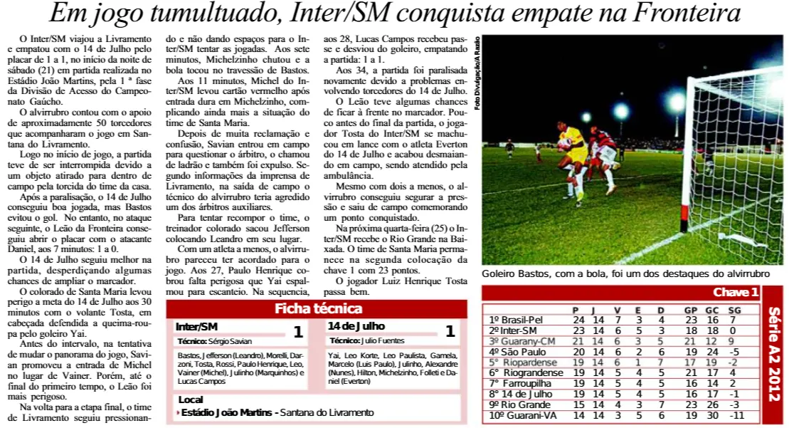 14 de Julho 1×1 Inter-SM | 2012